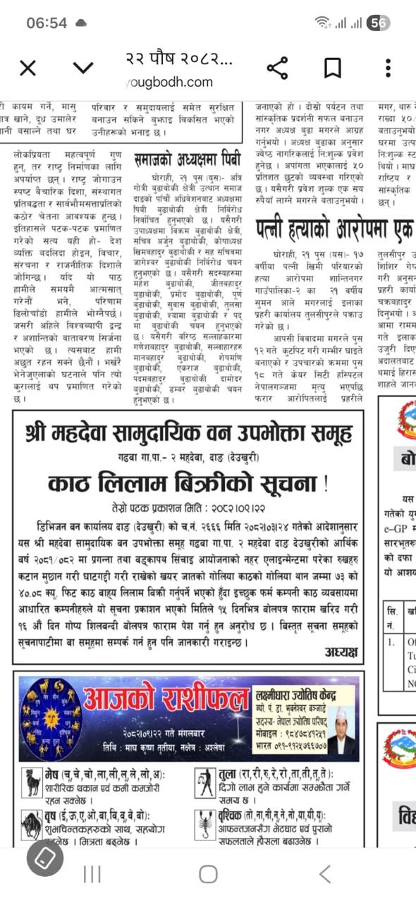 श्री महदेवा सामुदायिक वन उपभोक्ता समूह गढवा गा.पा. - २ महदेवा, दाङ(देउखुरी) को काठ लिलाम बिक्रीको तश्रो पटक प्रकाशित सूचना